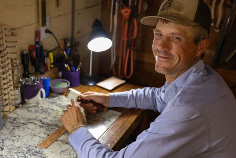 Riley’s start in leathercrafting came out of necessity. As a young assistant horse trainer, he could not afford the quality gear he needed, but he could afford raw materials and felt he could learn to build the same quality gear.